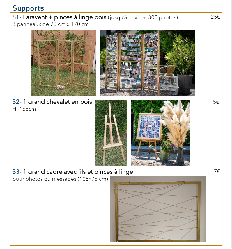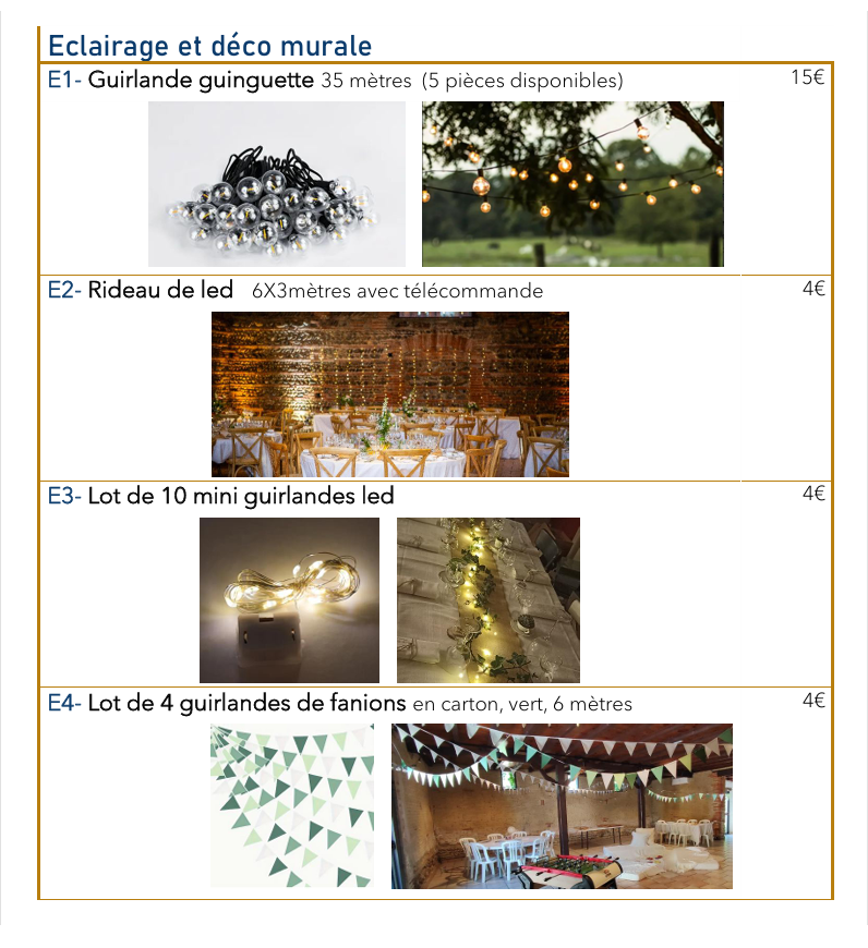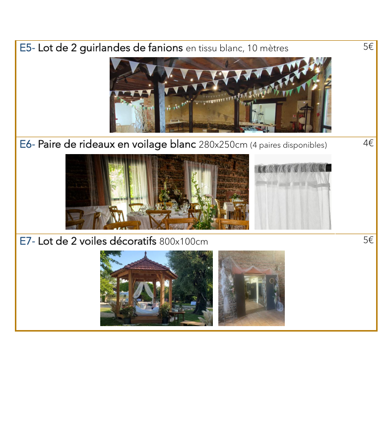 Tarifs pour une location 2 jours ou week-end, commande minimum de 20€, caution demandée, retrait et dépôt à Ayguesvives